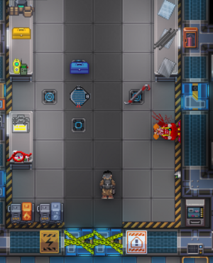 При помощи этой ленты вы можете ограничить какой-либо участок от попадания туда людей. Также с ее помощью можно оцепить дверь. Находятся в шкафчиках Офицера СБ, Детектива и Криминалиста, а также в вендоматах СБ.